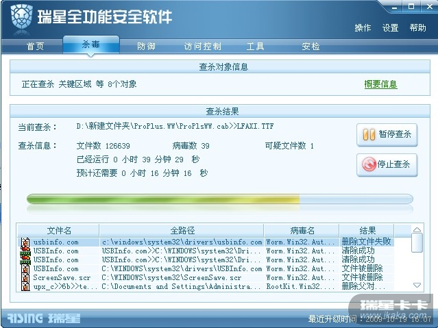 病毒文件在什么路径下,瑞星的查杀结果是什么?