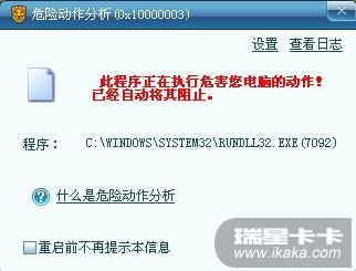 把C:\WINDOWS\system32\RUNDLL32.exe加入所有的白名单,关闭瑞星自我保护以
