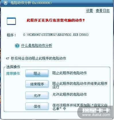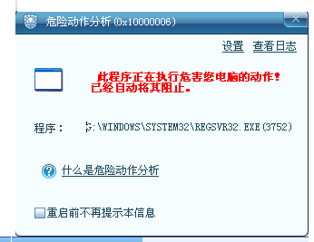 每次电脑启动瑞星都会出现REGSVR32.EXE(3764) 贴了图 上传了日志