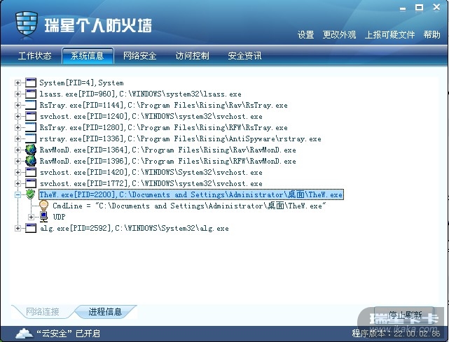 TheW.exe程序双击后自动复制到drivers目录下,并自动连接网络,防火墙无提示,种种迹象判断为注入进程木马