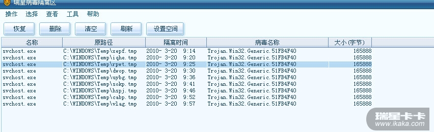 C:\WINDOWS\Temp  不停的生成大量tmp文件 同时瑞星监控查杀到svchost.exe名称的病毒,而且现在还无法正常启动了滚动条那里蓝屏,只能进入调试模式或安全模式