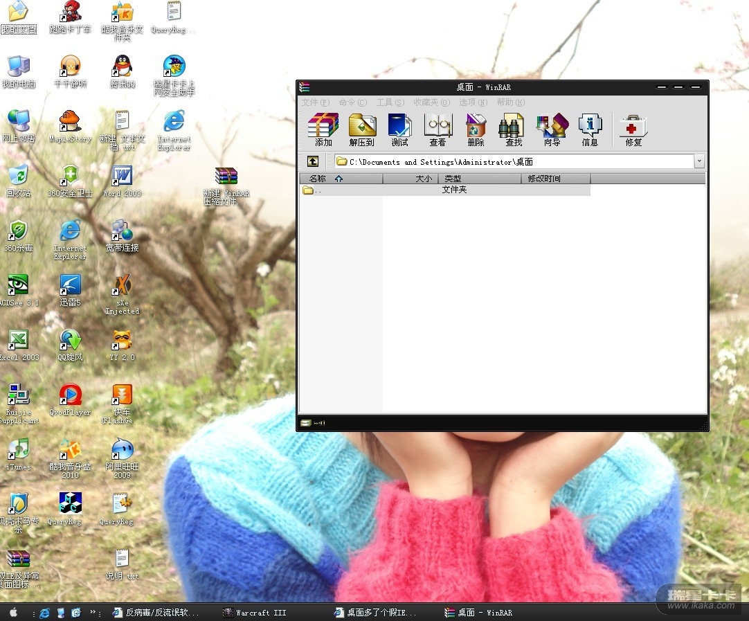 用解压工具WinRAR打开你的桌面文件夹看什么情况,抓图我看