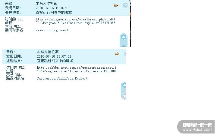 本来蛮好在魔兽世界游戏中。。。突然朋友来问一个魔兽的问题,我想就帮他百度下巴,看到百度显示有个论坛正好有这个话题,于是点进去了看了。。。。谁知道网页没打开,就看到硬盘灯在狂闪。。。。心想不对,立马看任务管理器。。发现一个未知可疑进程,于是禁掉。。但是为时已晚。。。发现右下角的瑞星卡卡助手,杀毒软件,防火墙都没了。。。。尝试走开始-程序打开杀毒软件,到可以打开。。但是对任何文件的右击菜单的杀毒选项已经没有了。。。尝试用可以打开的瑞星查杀整个分区。。。点了立即查杀后就没反映了。。。。程序就像死掉一样无响应。。重装傻毒软件,修复杀毒软件都没用(同样包括防火墙)。。。只能重装系统。。由于第一次重装后没有意识到病毒会扩散的很厉害,并没有注意其他分区的备份文件染毒情况,导致系统装好恢复文件时再一次崩溃。。。