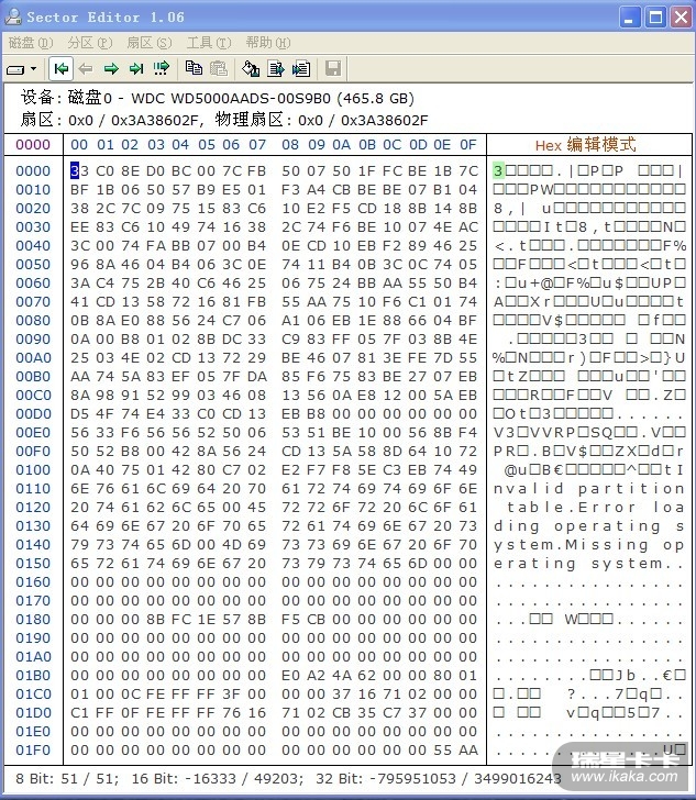 回复: 求高手看一下磁盘引导区是否中毒 呗修改