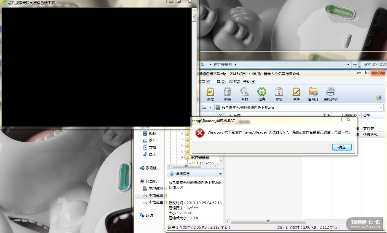 双击了下打开了压缩包,然后双击了压缩包中的“超凡搜索无限制版绿色版下载.lnk”这个文件出现下图