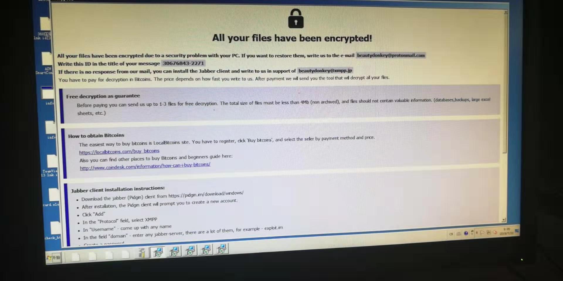 [求助] 中了勒索病毒,后缀.bitdonkey,急求大神