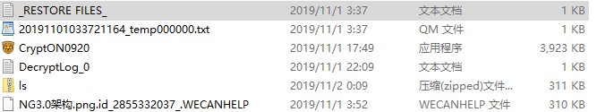 应该是.CryptON[WECANHELP后缀]的另一个新变种,加密方式不同以往,目前我们只能持续跟踪,后续在没有样本的情况下寻找新的方式解密。