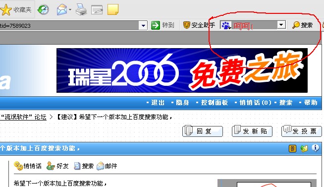 【建议】希望下一个版本加上百度搜索功能,