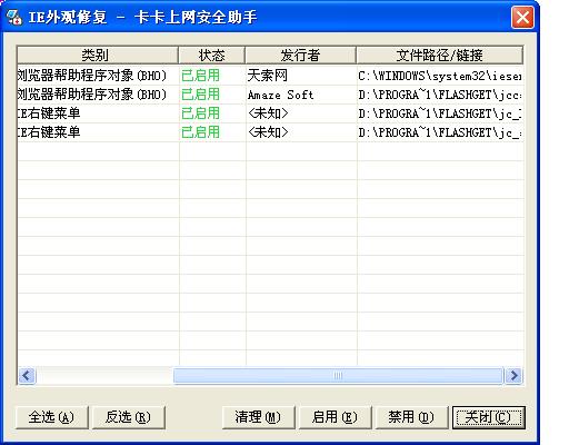 请版主看看帮查查有个插件用卡卡把它清了,他会在电脑重启自动生成并捆绑到IE上