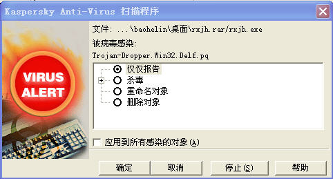刚用卡巴昨天的病毒库扫你给的包————
