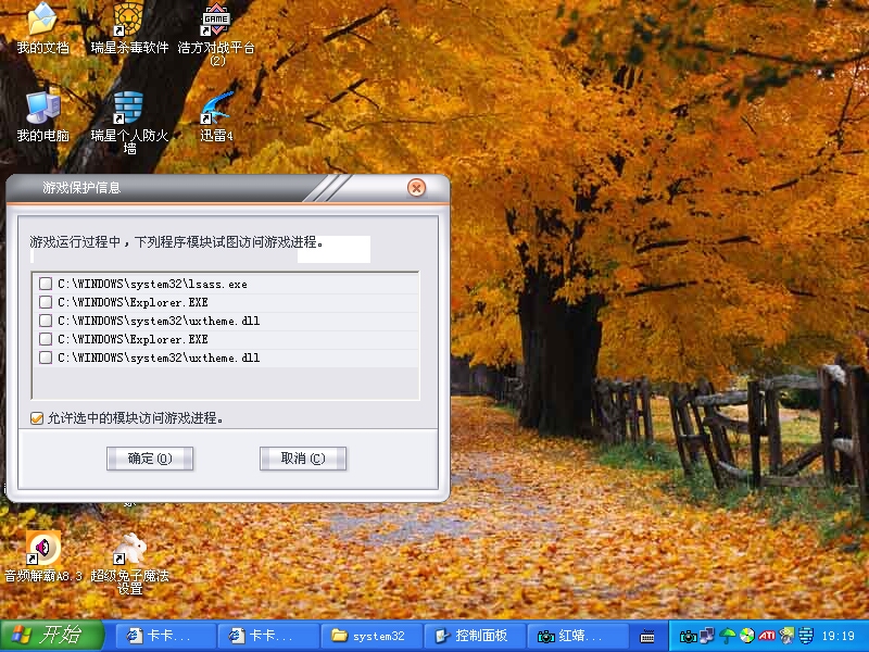 每次上游戏。总有几个文件进程要访问游戏。开始不知道是什么东西。后来看这里发的截图,他们的图上表示是病毒。但为什么我的瑞星杀不出来呢。