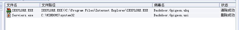 不好意思,第一个病毒名写错了,应该是Backdoor.Gpigeon.uhq