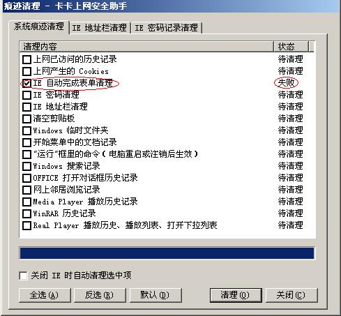 现在就只有 清理自动填表 功能失败,其他的都正常!不知道是什么问题...