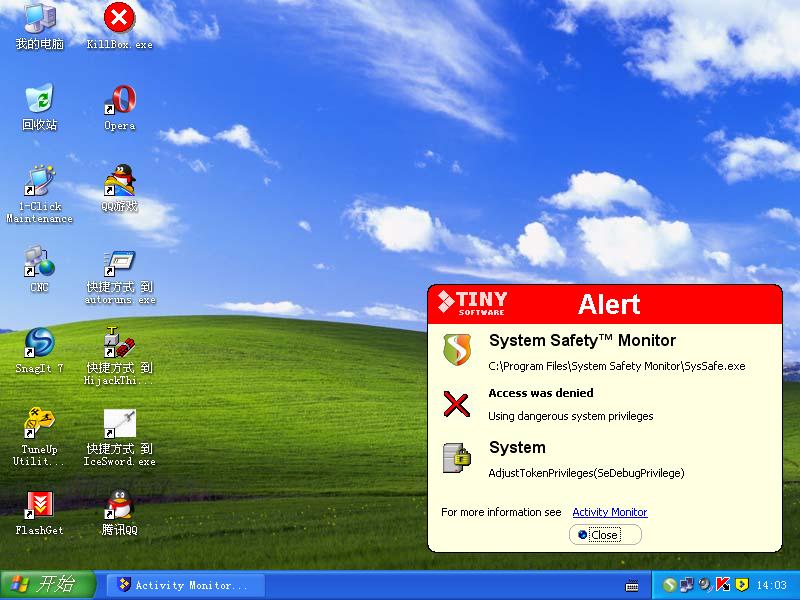 最近,有朋友反应——IceSword莫名其妙的不能运行(提示“初始化失败[3])。今天升级SSM后(由2.0.0.555升级至2.0.0558),我也遇到同样问题。