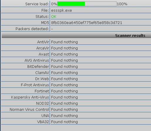 This is a report processed by VirusTotal on 02/01/2006 at 17:34:54 (CET) after scanning the file "essspk.exe" file.