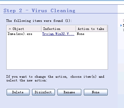 直接杀毒,应该有查到病毒后,清除病毒吧