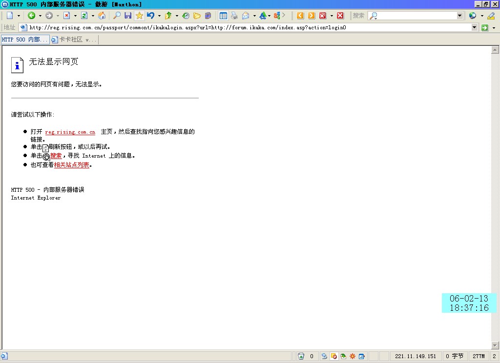 有些朋友在进入卡卡论坛后输入用户名和密码后出现以下图片(六次试验每次我输入用户名后都出现的)