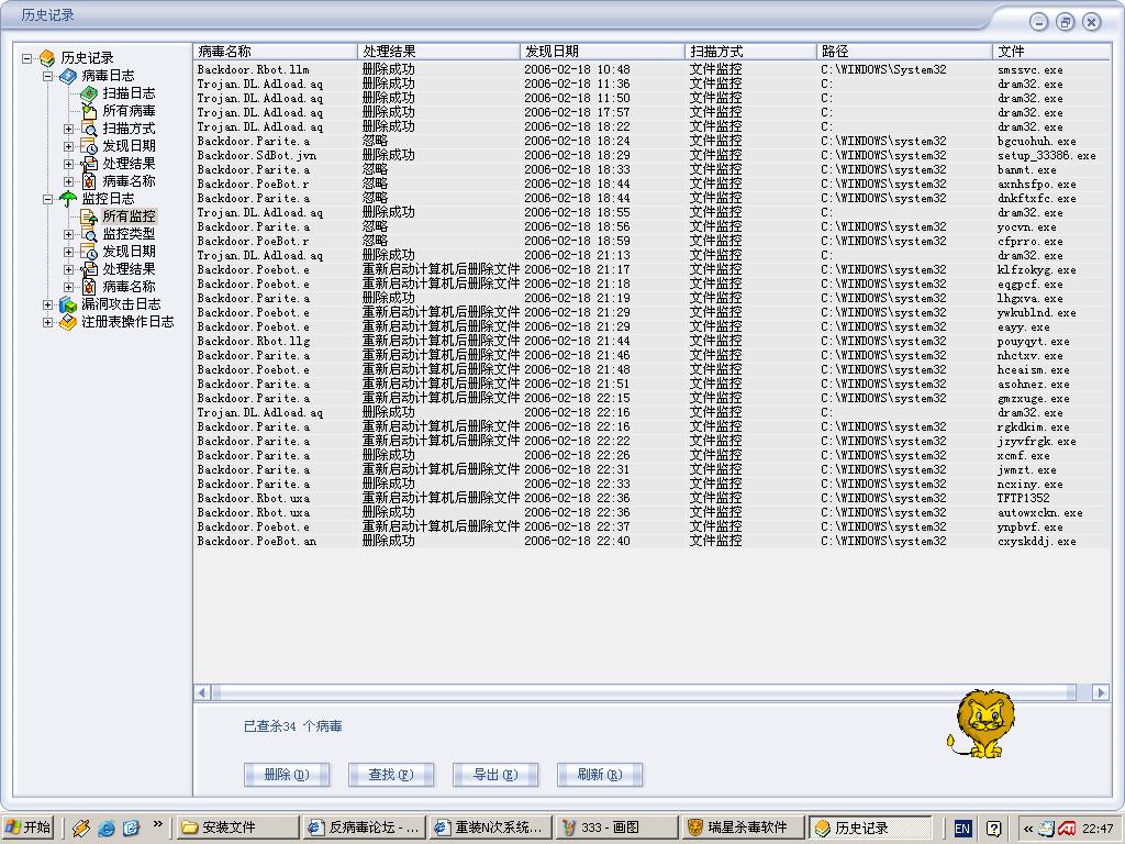 又重新装的,照朋友说的用金山的免费杀毒试了下,还是有病毒