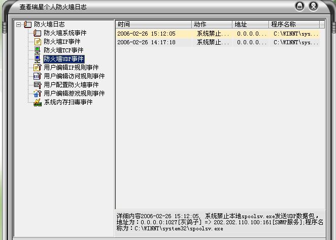 我的瑞星防火墙挡住了spoolsv的连接请求,如图。图中的202.202.110.100是我的网络打印机地址。spoolsv从0.0.0.0上发送,问题是0.0.0.0后面跟了一个[灰鸽子],这就吓到我了,请大家看看是不是灰鸽子。我用hj扫描过,也在安全模式下手动搜索过没有发现灰鸽子的特征病毒。