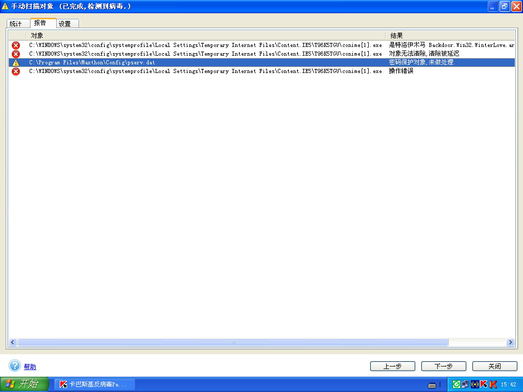 在某些情况下针对“灰鸽子”病毒的某些版本,使用本检测工具将无法检测到病毒,在确实存在明显的病毒症状的前提下,用户可在系统目录中自行查找可疑文件或联系瑞星客户服务中心寻求解决方法。