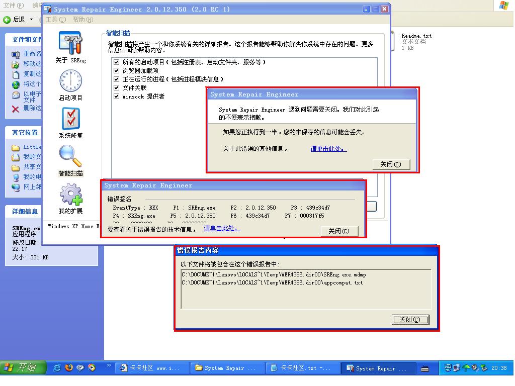 【求助】System Repair Engineer(2.0.12.350 RC1版)遇到了问题