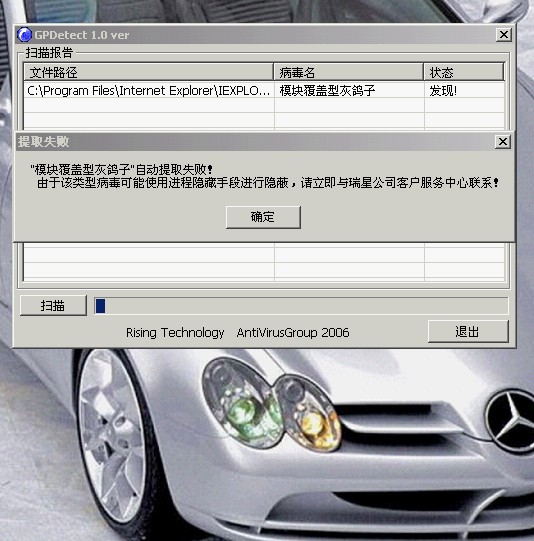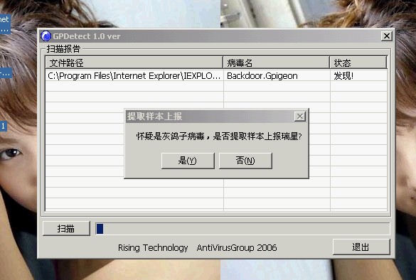 不幸感染上灰鸽子,用瑞星杀毒没用,每次杀每次有,好像删不掉,后来下载专杀软件,又杀了几个,不过还有一个始终杀不掉,郁闷!!!每次在玩游戏时跳出“系统出现严重错误,将在1分钟内重起”后来就强制重起了,有时还会出现iexplore。EXE错误,就死机了。谁能帮帮我啊,谢谢啦,用专杀软件他说是“覆盖模块灰鸽子”这样的,怎么回事?