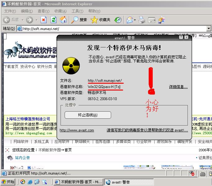 【警告】"木蚂蚁软件园"网页里有木马病毒!小心为好!