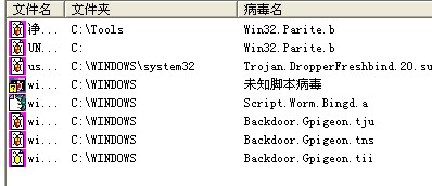 下面的图上的后3个病毒我杀不掉,前面5个都已经杀了,求高手帮帮忙。/先告诉我着是什么病毒。
