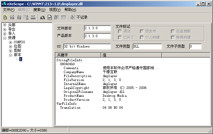 3、删除系统目录下 \WINNT\2.1.3.0\dmplayer.dll