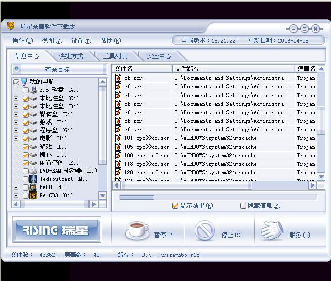 40多个病毒,每回开机都钻归来。。。。。。