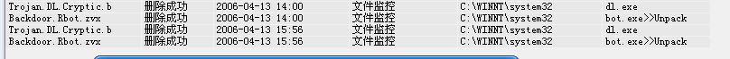 今天瑞星一直跳出提示Backdoor.Rbot.zvx病毒,请问这是什么病毒,有什么危害?还有一个:Trojan.DL.Cryptic.b