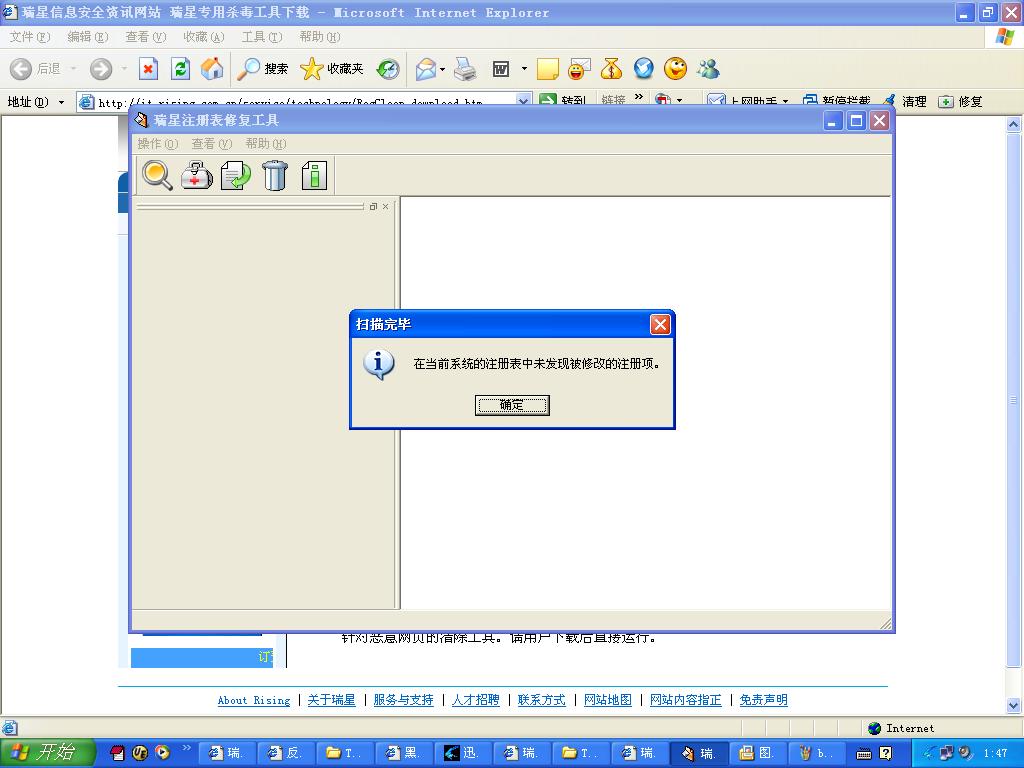 修复了,也不成,我用rising在线查毒,IE说错误,附上图片(瑞星注册表清理出现的错误).
