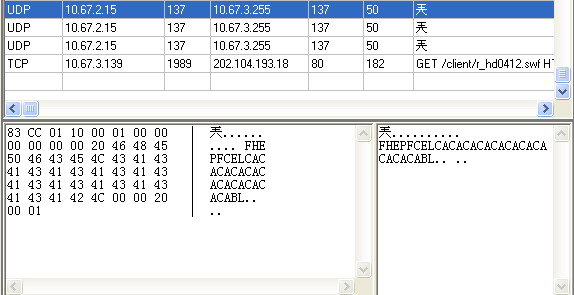 我所在的局域网为10.67.3.0网段,四月份以来网络突然变得很慢.用网络抓包器V1.0查看,发现局域网内很多机子在发包访问"10.67.3.255"这个地址,但在网络中根本没这台机子.请高手看看附件中的抓图.