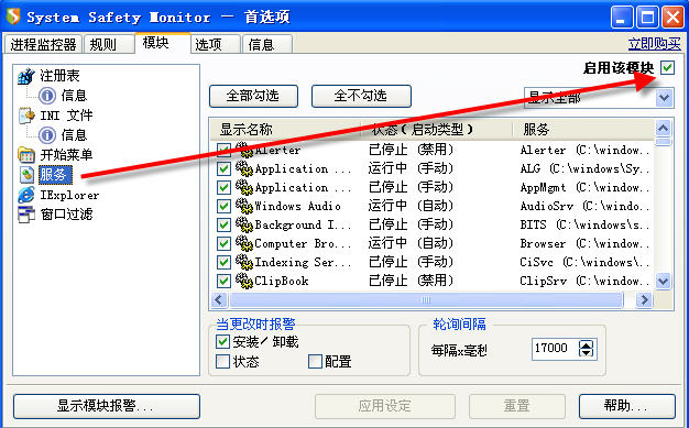 除非你正在安装程序,否则,注册系统服务干吗?如果你没安装程序,SSM提示某某程序要安装/注册系统服务,你一律以“总是阻止该操作”回应。