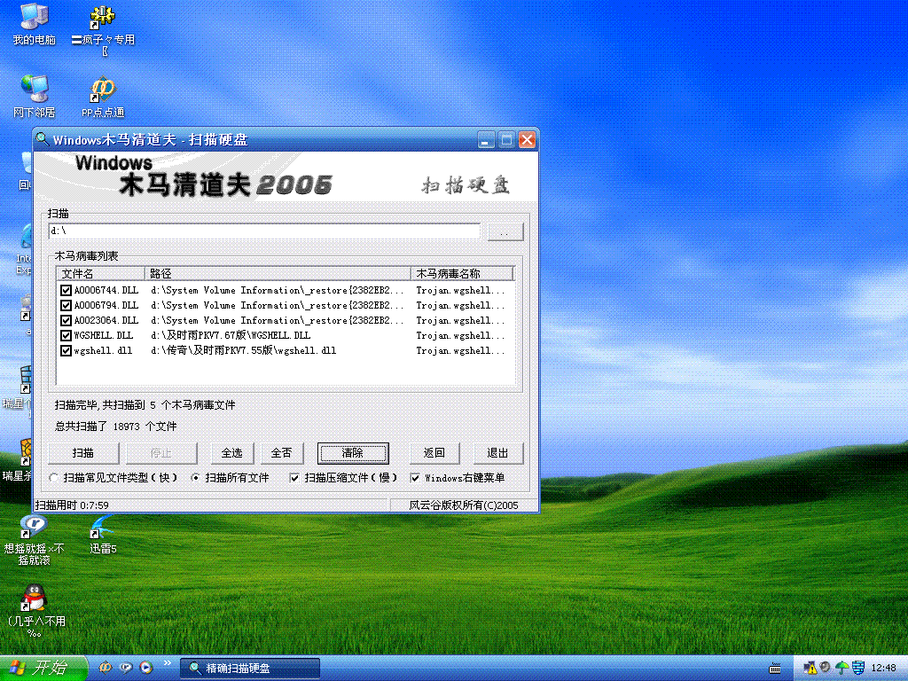 谢谢哥哥门我的D盘还有该死的木马~~怎么杀杀杀~~~呀??????