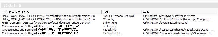 所有的启动项目(包括注册表、启动文件夹、服务等)
