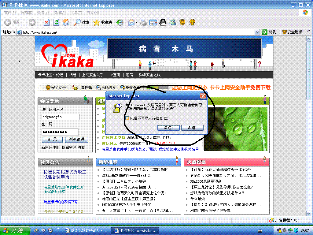 IE变成深蓝色的了..打开IE提示注册表修改什么的我~~拒绝~~了想近卡卡社区~输入通行证~密码点了登陆~却发现有提示说~如图~~点了好多次~是~但还进不了社区