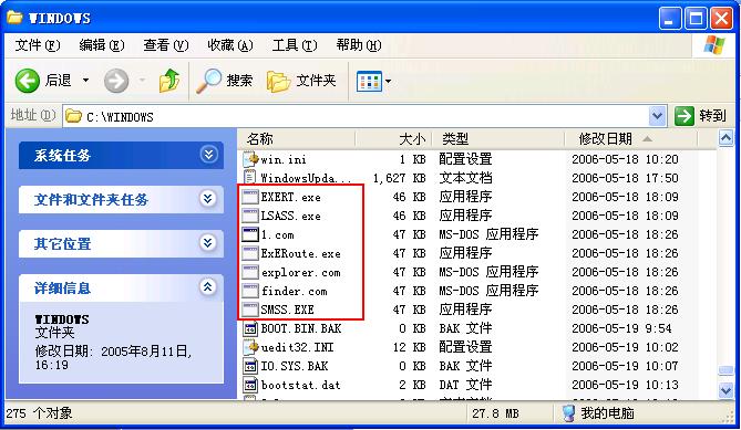 看来是木马把EXE的文件关联修改,只能先修复文件关联了,我把SRENG.exe(