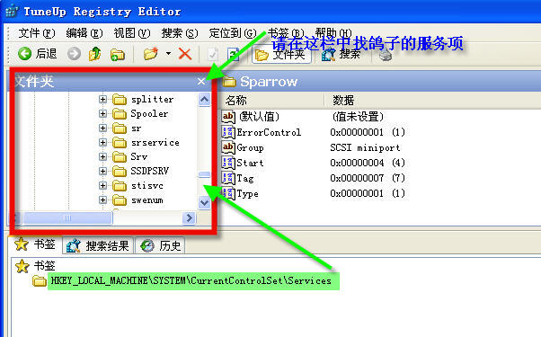 我曾经一再强调——灰鸽子的服务名,应根据日志提供的线索,在HKEY_LOCAL_MACHINE\SYSTEM\CurrentControlSet\Services分支的左栏中寻找。