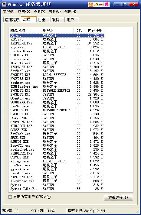 当前运行的进程: