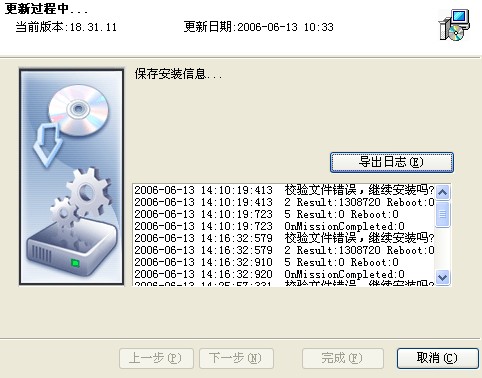 2006-06-13 14:25:57:331  校验文件错误,继续安装吗?