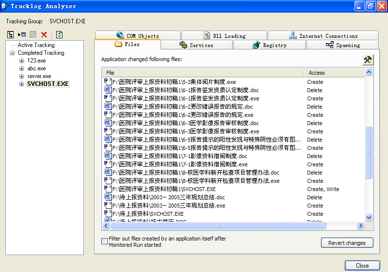 然后,全盘搜索DOC、RTF文件,找到后即删除之,并创建一个同名的.exe文件(48K)。在搜索到的每个 文件夹中创建一个木马主体文件SVCHOST.EXE