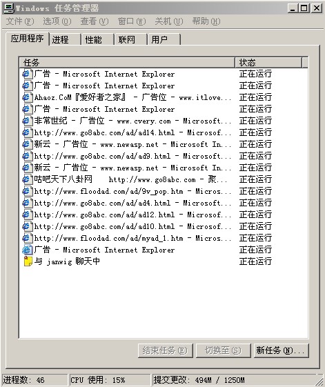 过一会你发现电脑速度怎么爆慢;打开任务管理器一看;傻了,100来个广告。。。疯了