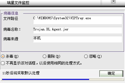 我家的电脑中了Trojan.DL.Agent.jer  病毒啊~~不知道为什么总是删不了~~瑞星杀了一次~~等一会又走出来~~究竟发生了什么事啊~~希望能帮帮我啊