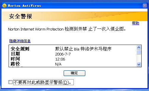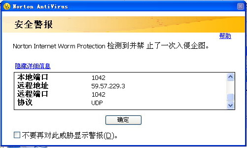 用瑞星和norton都出现同样问题,在安全模式下和正常模式下都已扫描全系统,无发现病毒。但是一连接internet就出现有人攻击的现象,如图