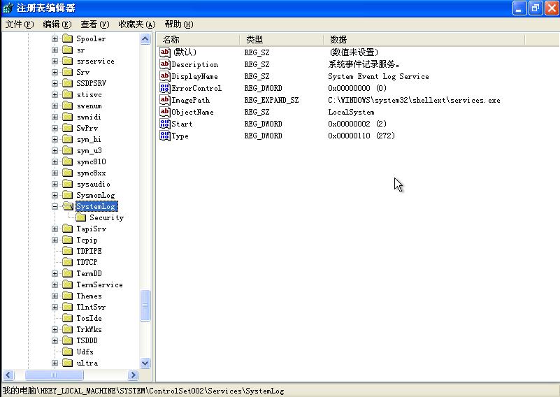 去[HKEY_LOCAL_MACHINE\SYSTEM\ControlSet002\Services] 会有一个和[HKEY_LOCAL_MACHINE\SYSTEM\CurrentControlSet\Services]一模一样的systemLog ..