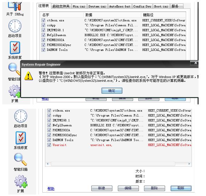 请下载 System Repair Engineer,使用“智能扫描”,按下“扫描”按钮进行扫描,扫描完成后按下“保存报告”按钮保存报告日志文件(SREng.LOG),把保存的报告日志文件内容复制-粘贴上来