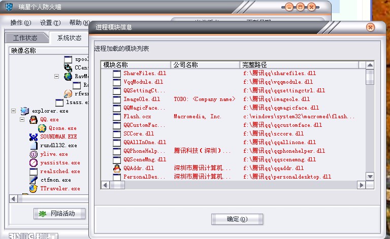瑞星防火墙里系统状态进程管理里好多都红的模块也红的