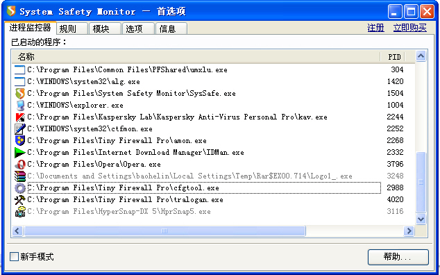 + AMonitor    eTrust Activity Monitor    Computer Associates International, Inc.    c:\program files\tiny firewall pro\amon.exe