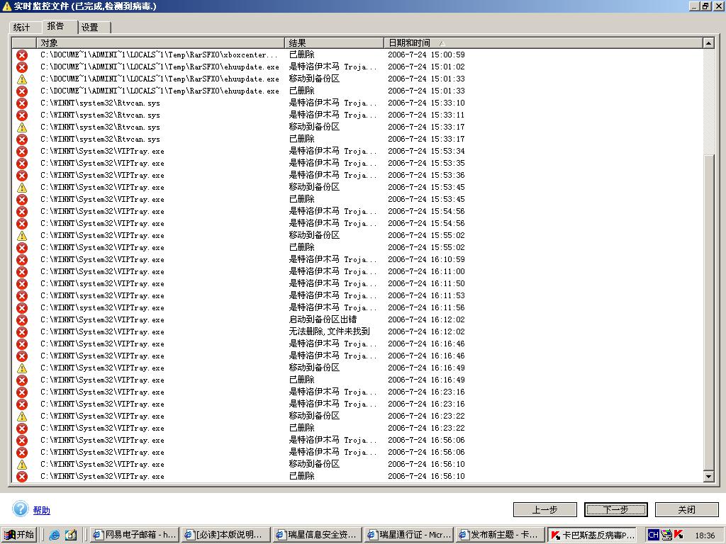 一不小心中毒了,浏览器特别慢,自己跳网页 卡巴检测如图